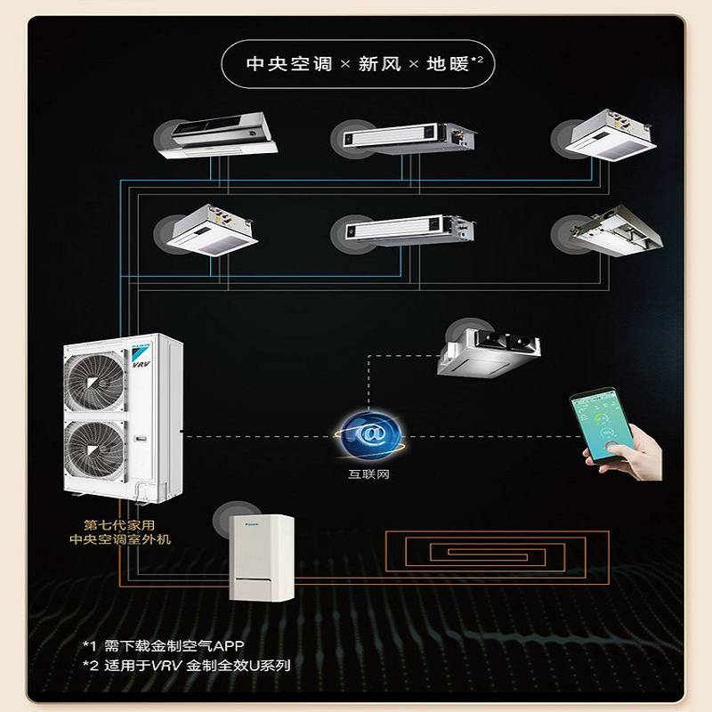 大金家用户式别墅家装中央空调系列 北京大金空调VRV住宅用金制U多联机 大金大金空调一拖四一拖五