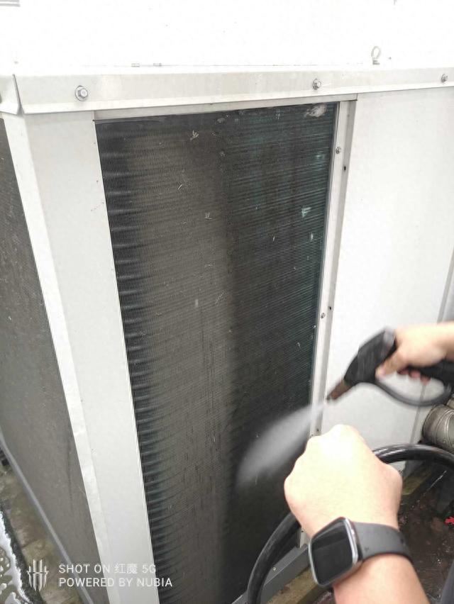 中央空调主机把7度的冷冻水送进风盘,在风机盘管内交换为15到16度的冷风,然后使房间的温度降低。但是空气中的灰尘颗粒很多,然后在长期的送风回风的作用下呢,风机盘管的翅片上就积满了灰尘污垢,这样会造成翅片的换热效率下降,导致出现房间内虽然开了空调但是不良的现象。所以呢,中央空调的风机盘管使用一段时间后呢,就必须进行定期的清洗。
