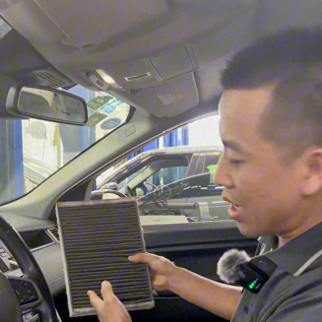 ·首先到车内准备车辆,首先需要把原车的空调滤芯拆卸下来,空调滤芯的盖子盖上。