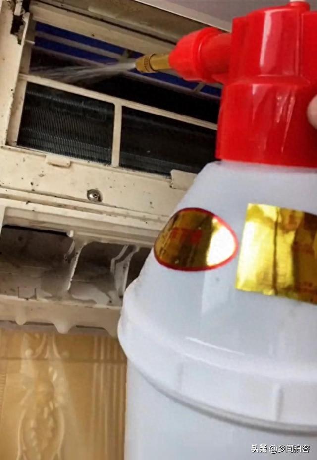 然后盖条毛巾在空调顶上,防止一会儿喷水喷到天花板上了