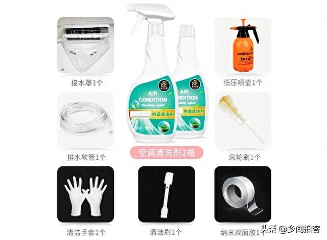 首先准备工具,一个毛刷和空调专用清洗剂,(清水也行,但是不建议用,因为水里面也含有细菌,而且空调里面的污渍洗不干净)一个排水袋,喷水壶,没有这几样工具的,我给大家推荐,可以到文章下方看一下!废话不多说,下面开始讲干货