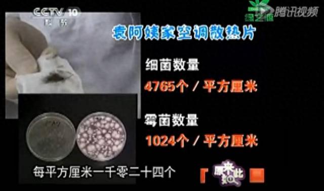 根据记者的随机调查,一位普通用户的空调散热片上细菌数量达到4765个/平方厘米,霉菌数量达到1024个/平方厘米;这些细菌随着空调风进入呼吸道,引发各种疾病;