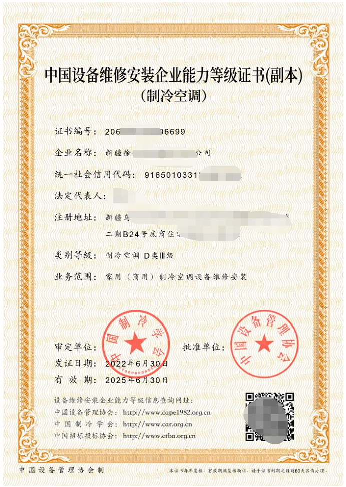 5. 下证:公示期满后,中国制冷空调工业协会将颁发制冷空调行业维修安装企业能力等级证书。
