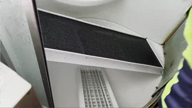 打开中央空调室内回风口轻轻扣板取下过滤网,用毛巾将室内机回风口面板擦干净。