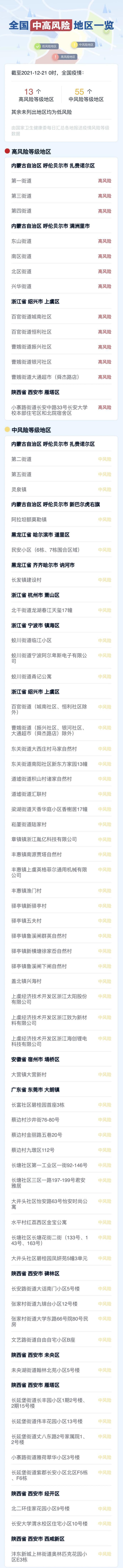 12月20日0—24时,新增新冠肺炎本土确诊病例57例(陕西43例,其中西安市42例、咸阳市1例;浙江8例,均在绍兴市;广东6例,均在东莞市)。新增本土无症状感染者1例(在黑龙江黑河市)。