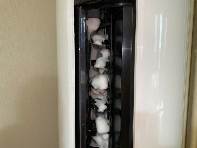 因为圆柱柜机的设计不同,我们从外部只能看到风轮,在风轮的内部紧挨着空调的蒸发器,可以想象出来,密闭在机身内的蒸发器霉菌只会更严重,这样的滚轮和蒸发器吹出来的风不夹杂着霉酸味才怪。