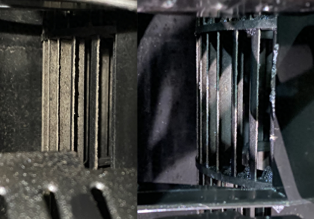 请问谁家的空调滤网可以与其比更脏?不服来战!经历五年风雨沙尘的滤网,确实有点震惊到我,你以为这就完了?除了这满是灰尘污垢的滤网,再来看看发散酸臭味的元凶:蒸发器+风轮!先用螺丝刀取下导风板,能够隐约看到内部的风轮,我们可以看到风轮的表面已经长了一层泛白的霉菌,这是由于制冷时温度较低,附着的冷凝水与灰尘混合到一起,极容易滋生细菌。
