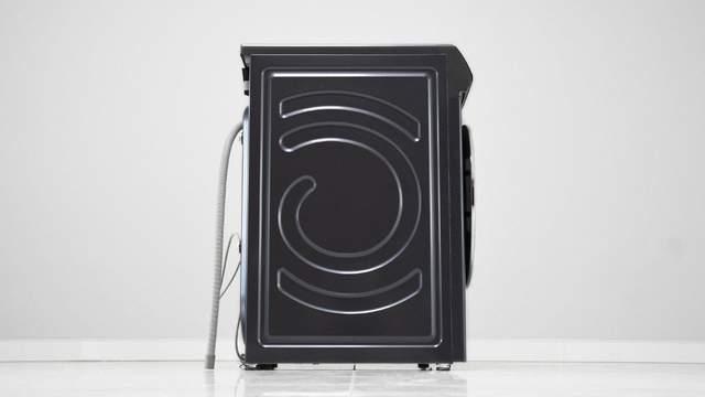 机身背部分布的模块比较多,不过安装以后靠墙放置,日常不会看到。背部的盖板根据机身内部零部件形态做了凹凸的造型处理,右上角黑色漏斗造型的是烘干出风口,从顶部向下看有出风格栅;旁边的白色圆孔是进水管接口。