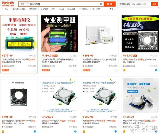 截取的部分截图,可以看到单单传感器部分就要达到100~200RMB了,请问几十块钱的甲醛检测仪怎么可能使用这些传感器?需要注意的是虽然都为达特,型号还是有区别的。当然批量拿货的价格肯定不会是零售价格。