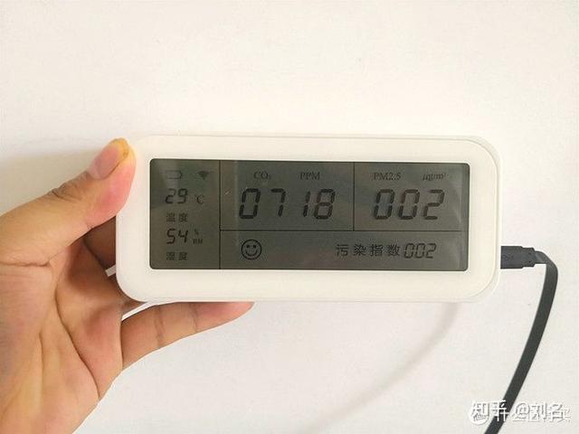 顶部白色圆圈就是甲醛传感器,设备预热没结束就拍完了,所以CO2显示是0不是坏了。