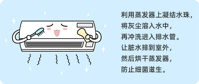 开启空调,把风量及制冷量调到最大,保持 10-20 分钟,让污水从排水管排出。