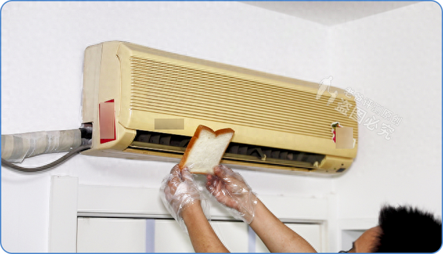 在空调清洗前后,我们分别用两个无防腐剂面包片,在出风口吹上 1 分钟,另外再准备一份未处理的面包片作为空白对照,然后将三份面包片分别放入无菌密封袋中。