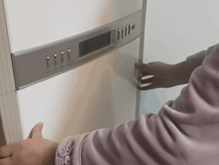 (二)用双手拉住空调两侧的扣手,向外拉打开面板,(不同品牌可能略有差异),取出过滤网。