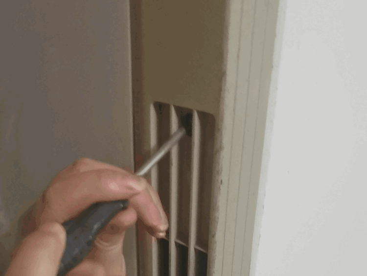 (四)清洗过滤网、晾干后,将过滤网轻轻推至底部与进风栅紧密贴合,然后将进风栅回装,再用螺丝刀将螺钉拧紧即可。